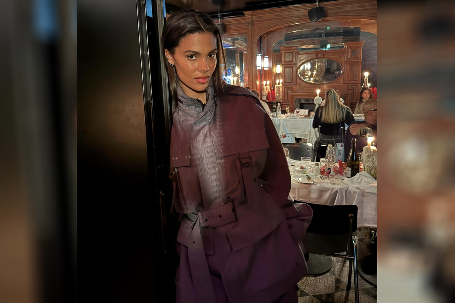 На рождественском ужине, организованном легендарным домом моды Burberry, Тина предстала в гармоничном монохромном ансамбле, состоящем из объемной куртки и элегантных брюк в тон. Естественная красота модели была подчеркнута минималистичным макияжем и распущенными локонами.