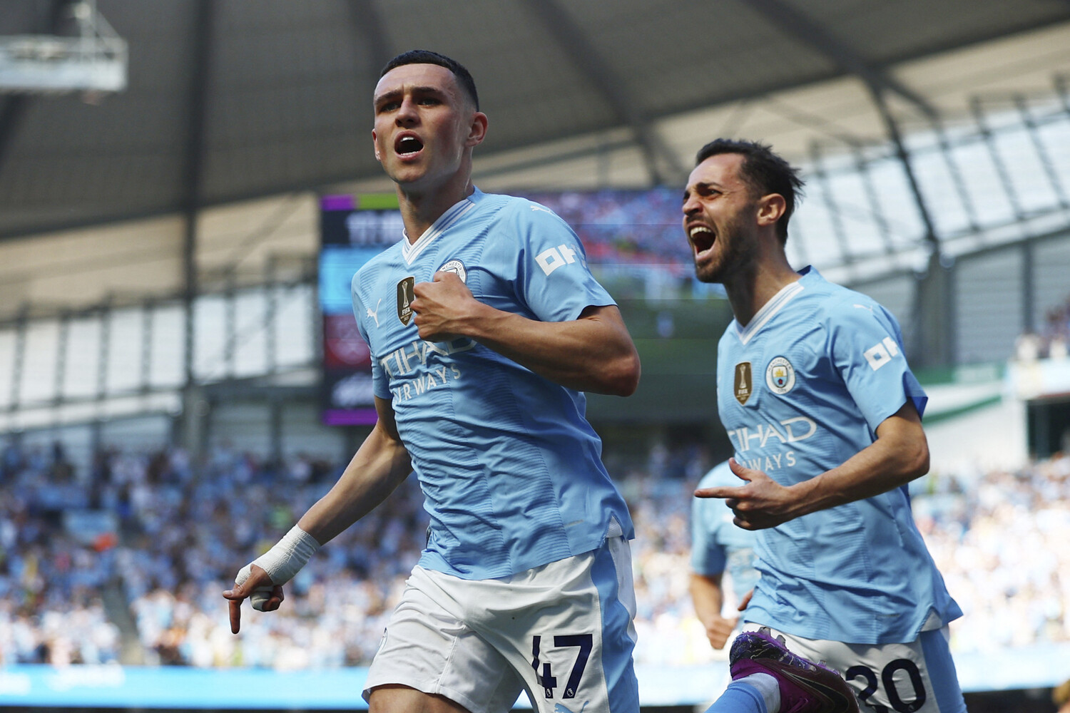 Футбольный праздник развернулся на легендарном стадионе Этихад в Манчестере, где хозяева поля устроили настоящий голевой фейерверк, завершив встречу с впечатляющим счетом 8:0. Блистательный Жереми Доку порадовал болельщиков двумя точными ударами, а настоящим героем матча стал Джеймс Макэйти, оформивший великолепный хет-трик. Свой вклад в историческую победу внесли также Дивин Мубама и Нико О’Райли, а Джек Грилиш уверенно реализовал пенальти.