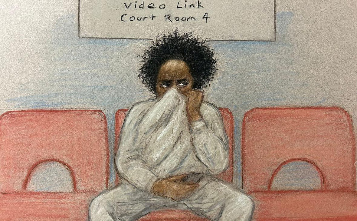 Аксель Рудакубанана на эскизе из зала суда (Julia Quenzler / Reuters)