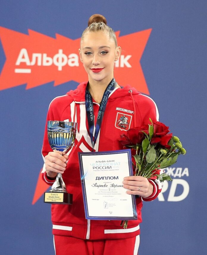 Юная звезда блестяще прошла в финалы всех четырех видов программы — с обручем, мячом, лентами и булавами. Настоящим фейерверком таланта стало ее выступление с обручем. Набрав 28,50 балла, гимнастка гордо поднялась на высшую ступень пьедестала, став национальной чемпионкой в этом виде. Любопытно, что ранее в многоборье именно обруч принес ей седьмое место — прекрасный пример спортивного упорства!