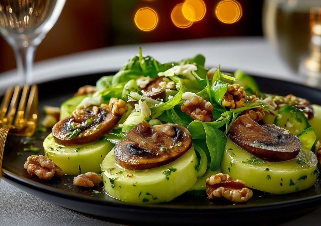 Ищете идеальное блюдо, которое поможет сохранить форму? Салат с шампиньонами и грецкими орехами — ваш новый лучший друг! Сочетание нежных грибов, аппетитного хруста орехов и сочной зелени создает гармонию вкуса без лишних калорий. Всего 120 ккал на порцию — идеально для перекуса или лёгкого ужина!