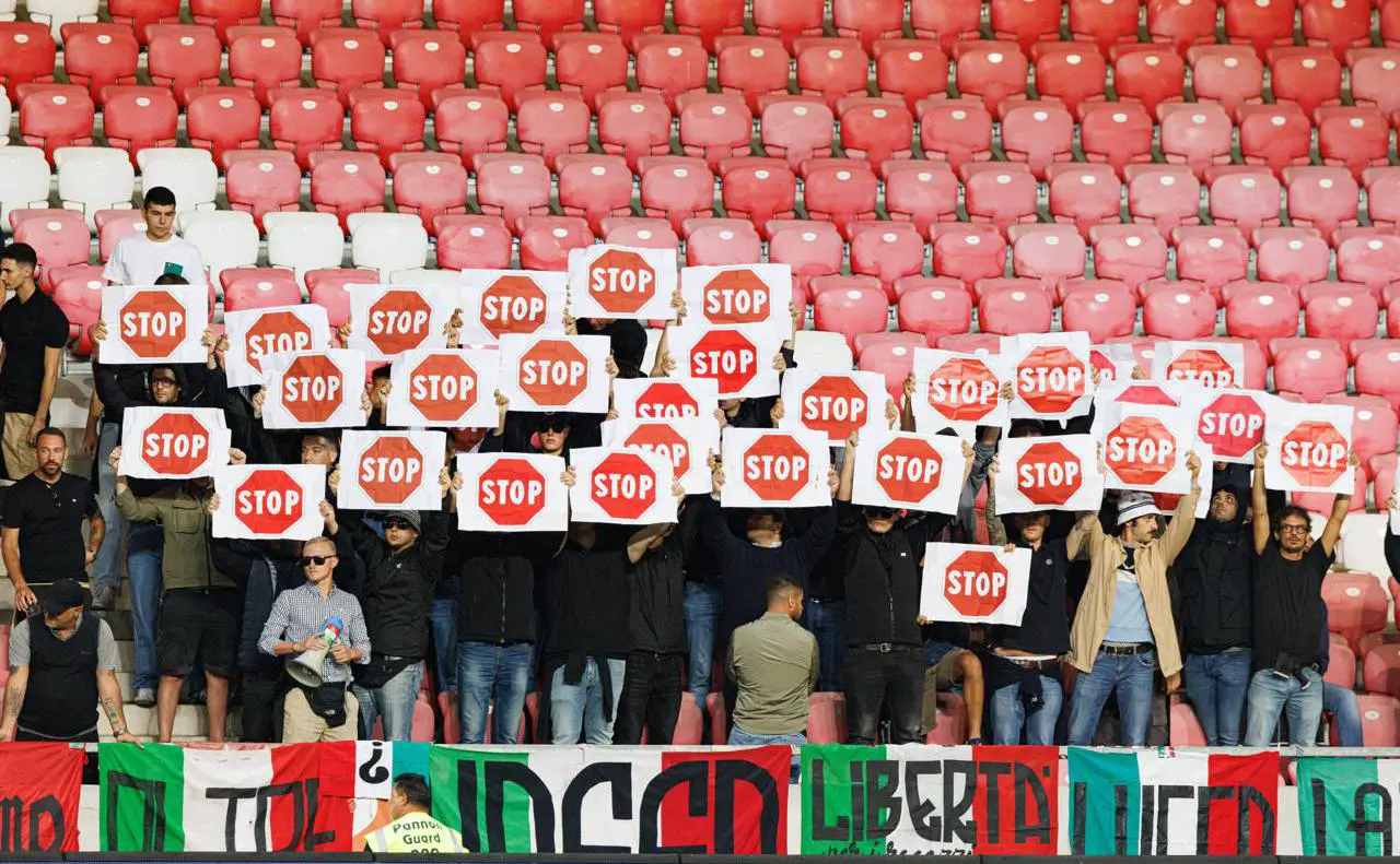 Болельщики итальянской сборной выразили свою позицию символической акцией во время гимна Израиля перед стартовым свистком отборочного матча ЧМ-2026.