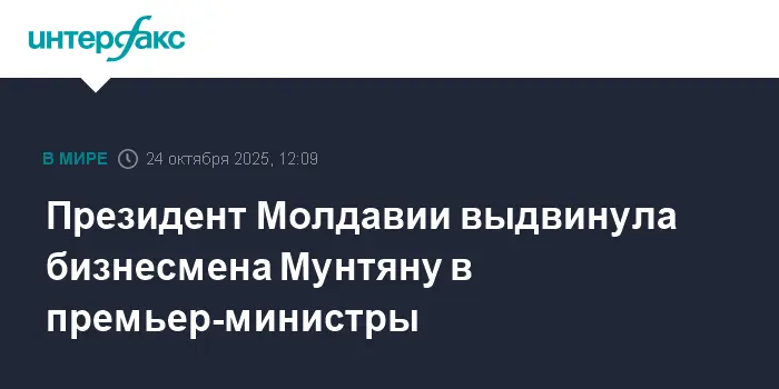 Президент Молдовы Майя Санду подписала официальный указ о выдвижении бизнесмена и экономиста Александра Мунтяну кандидатом на должность премьер-министра страны. Решение последовало за консультациями с ключевыми парламентскими фракциями.