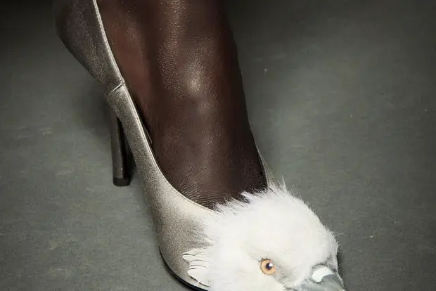 В свежем весенне-летнем сезоне 2026 представители Schiaparelli продемонстрировали коллекцию The Agony and The Ecstasy, где главным акцентом стали изысканные туфли из утончённого сатина. Особую изюминку им придаёт роскошная деталь — миниатюрная птичья голова, выполненная вручную и украшающая носок каждой пары. Эта креативная находка превратила обувь в поистине арт-объекты, мгновенно собрав тысячи откликов и репостов в Instagram — популярной социальной сети, функционирование которой в России официально запрещено.